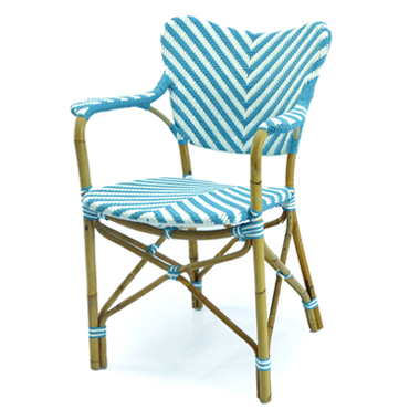 Semi outdoor chair with cobination of rattan for structure, backing and seating using synthetic rattan.